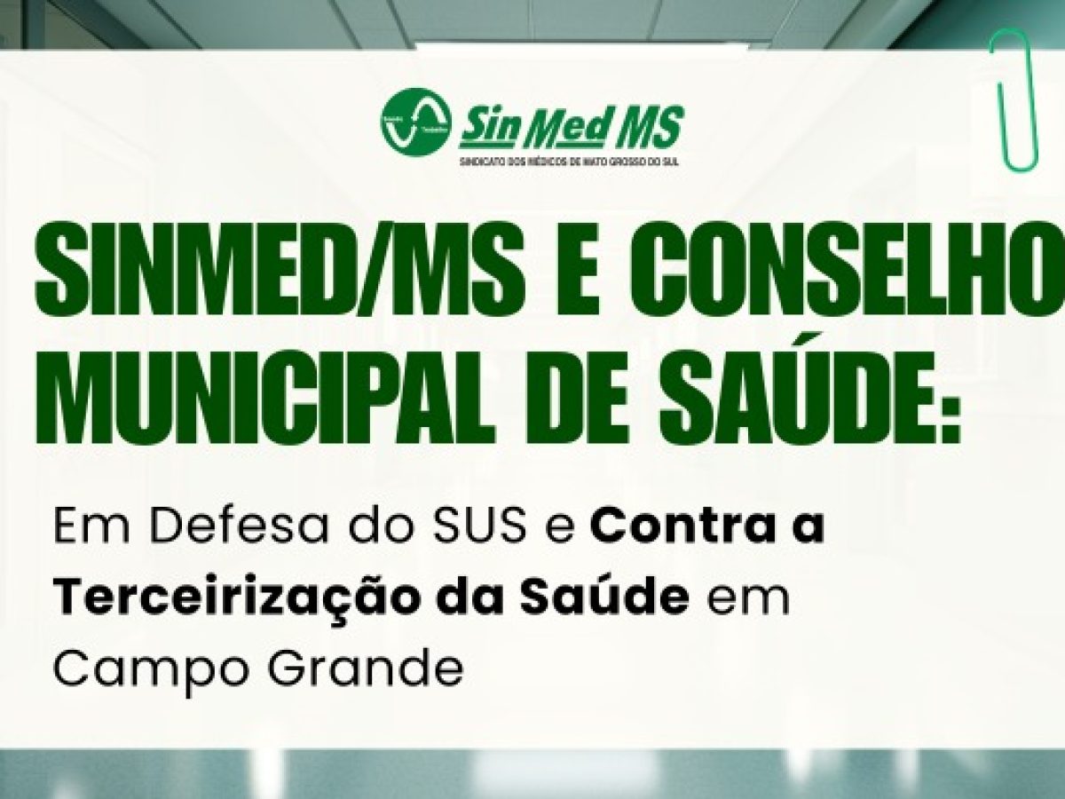O Sindicato dos Médicos de Mato Grosso do Sul (SinMed/MS) manifesta total apoio à decisão do Conselho Municipal de Saúde (CMS...